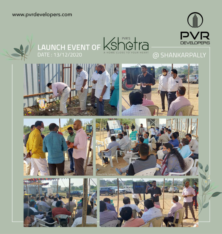 KSHETRA LAUNCH EVENT Clients get together @ Shankarpally Inauguration of new office @ Shankarpally Urban life - live project status Channel partner meet @ muthangi